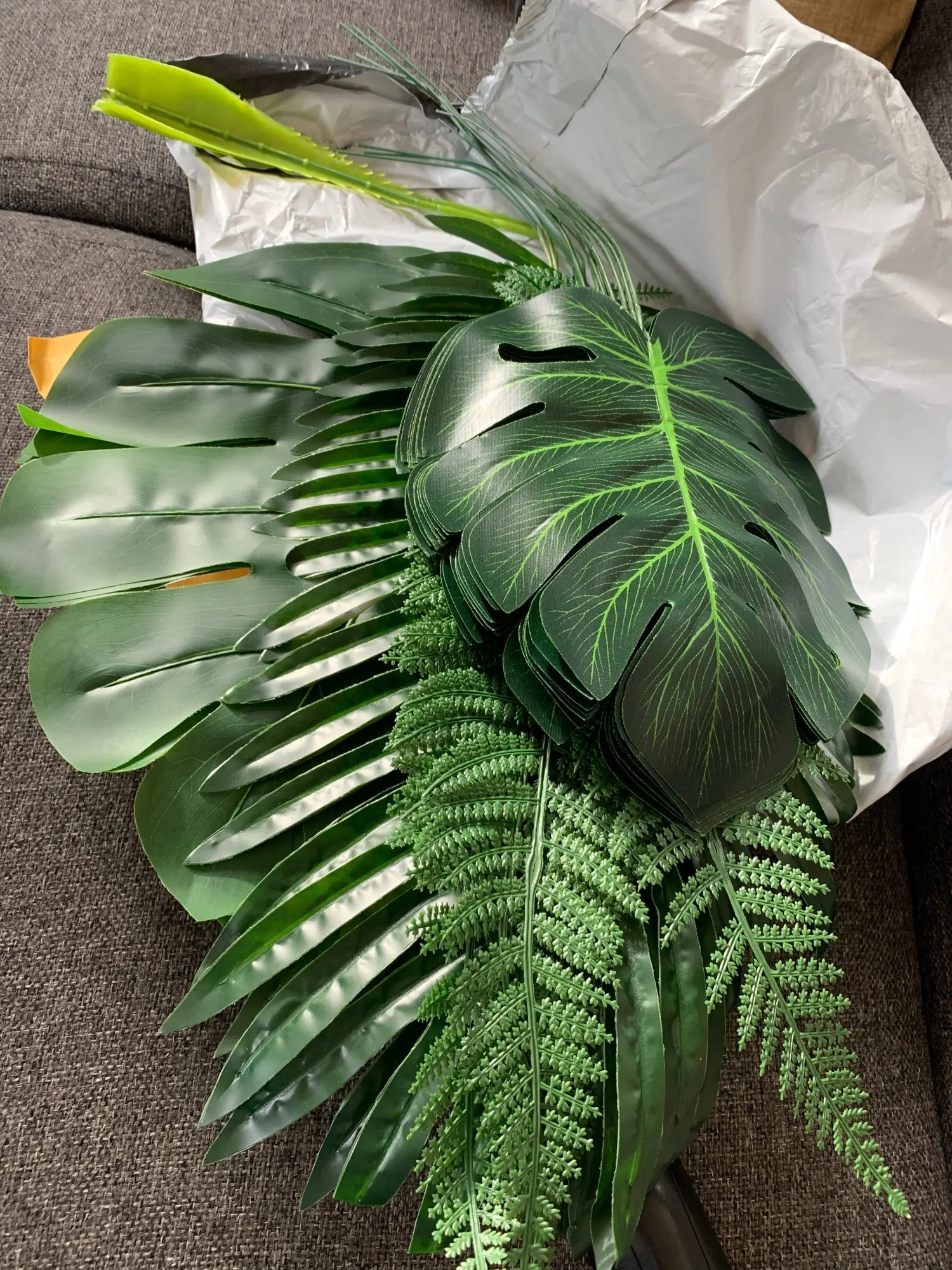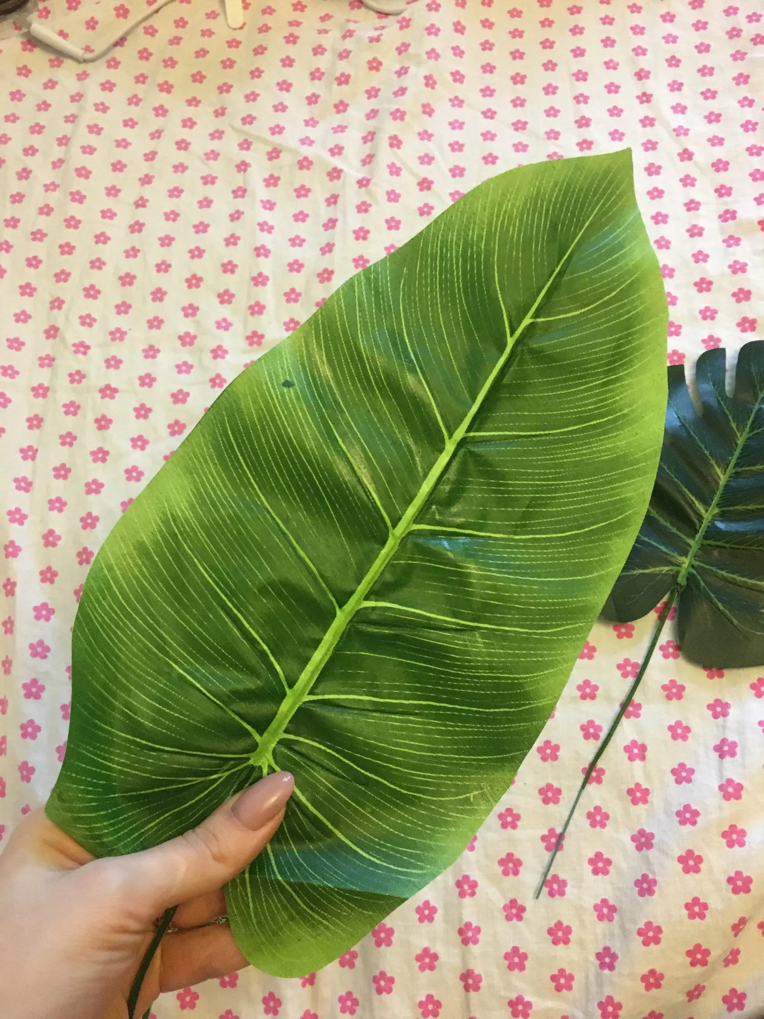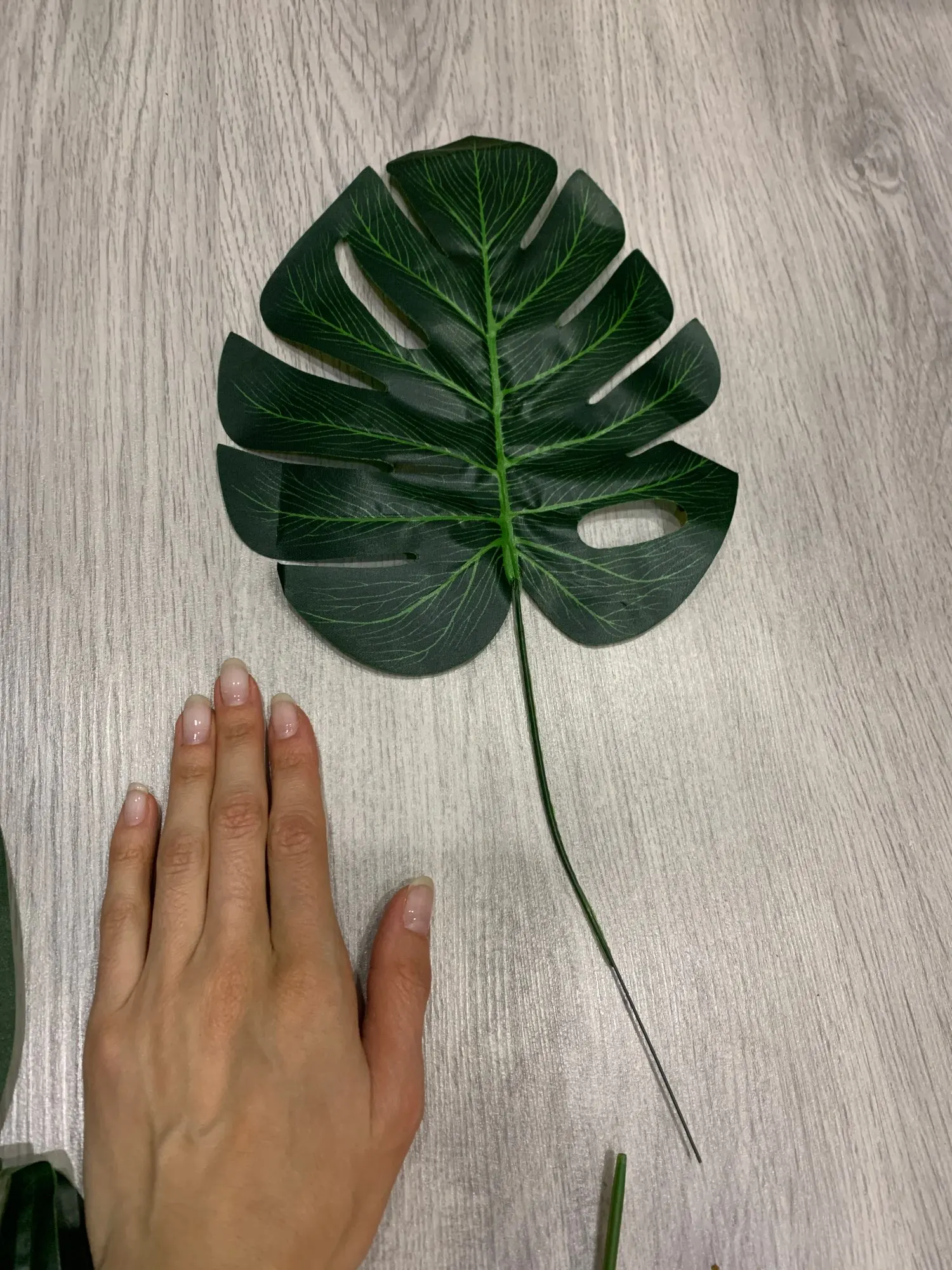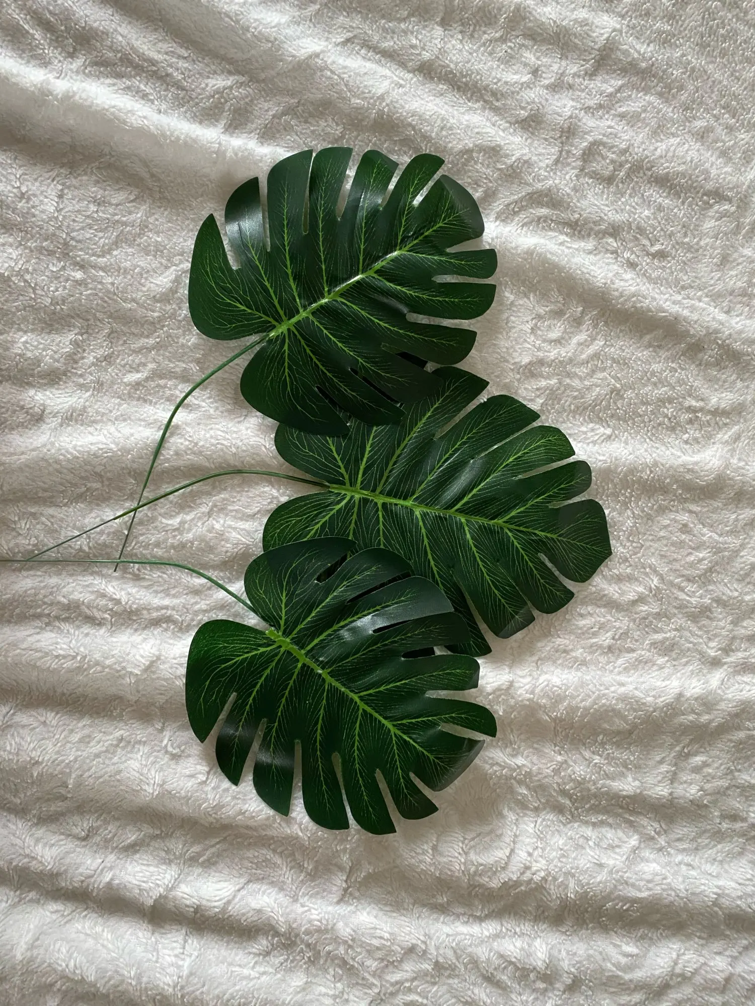 Дошли быстро, нормальные листочки. Материалом похожи на шторку для ванной. Взяла чтобы посмотреть на что они похожи, в принципе мне для декора подходят, для полётов картины надо ещё штук пять. В пути немного помялись, но выпрямить легко. Стебли короткие.