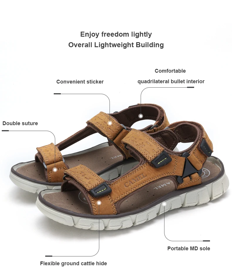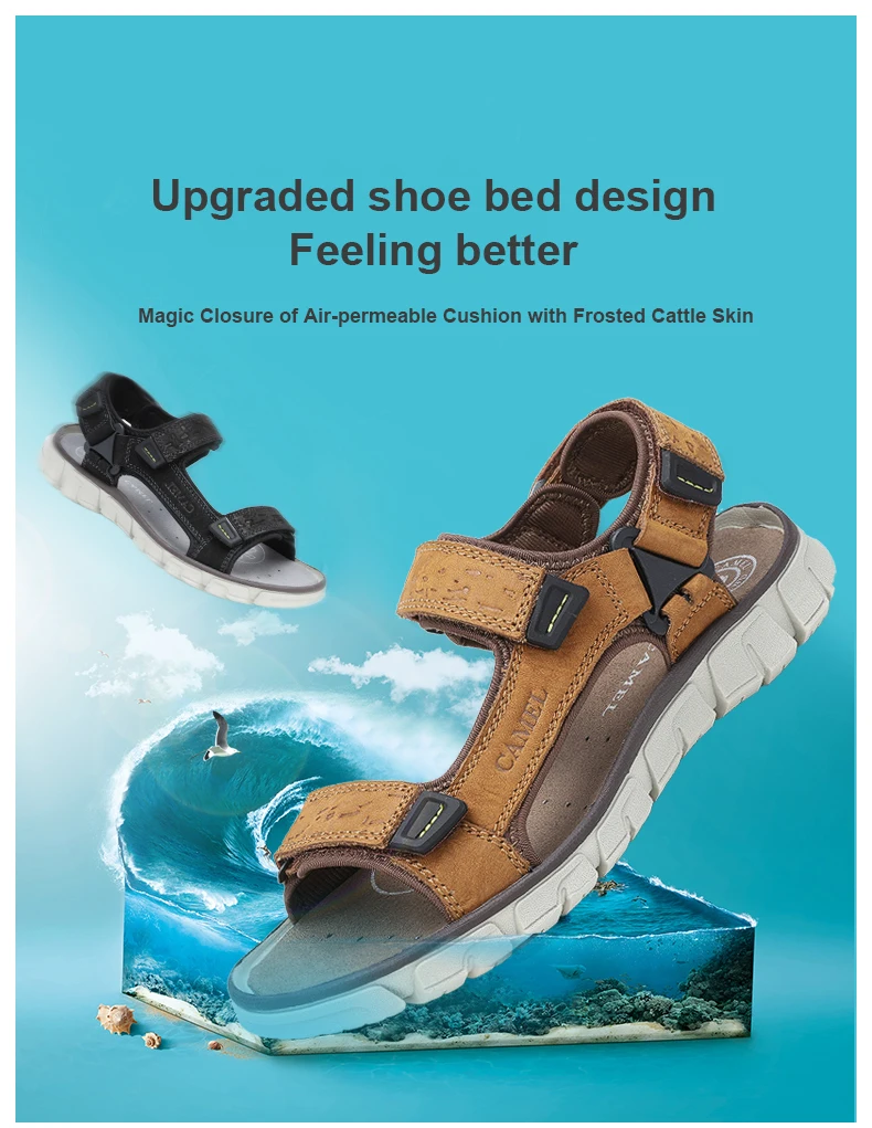 CAMEL/летние новые модные мужские сандалии, пляжная обувь, уличные сандалии, легкая мужская обувь из натуральной кожи с нескользящей липучкой