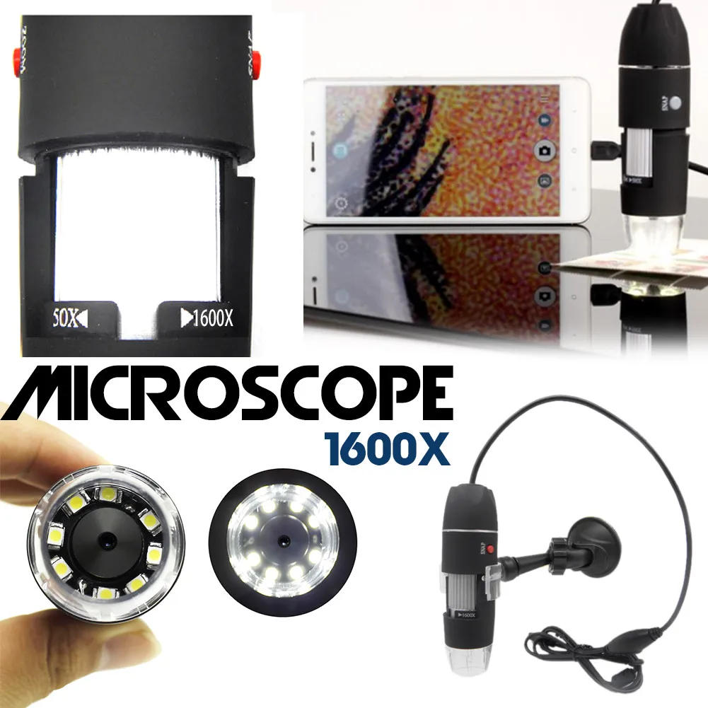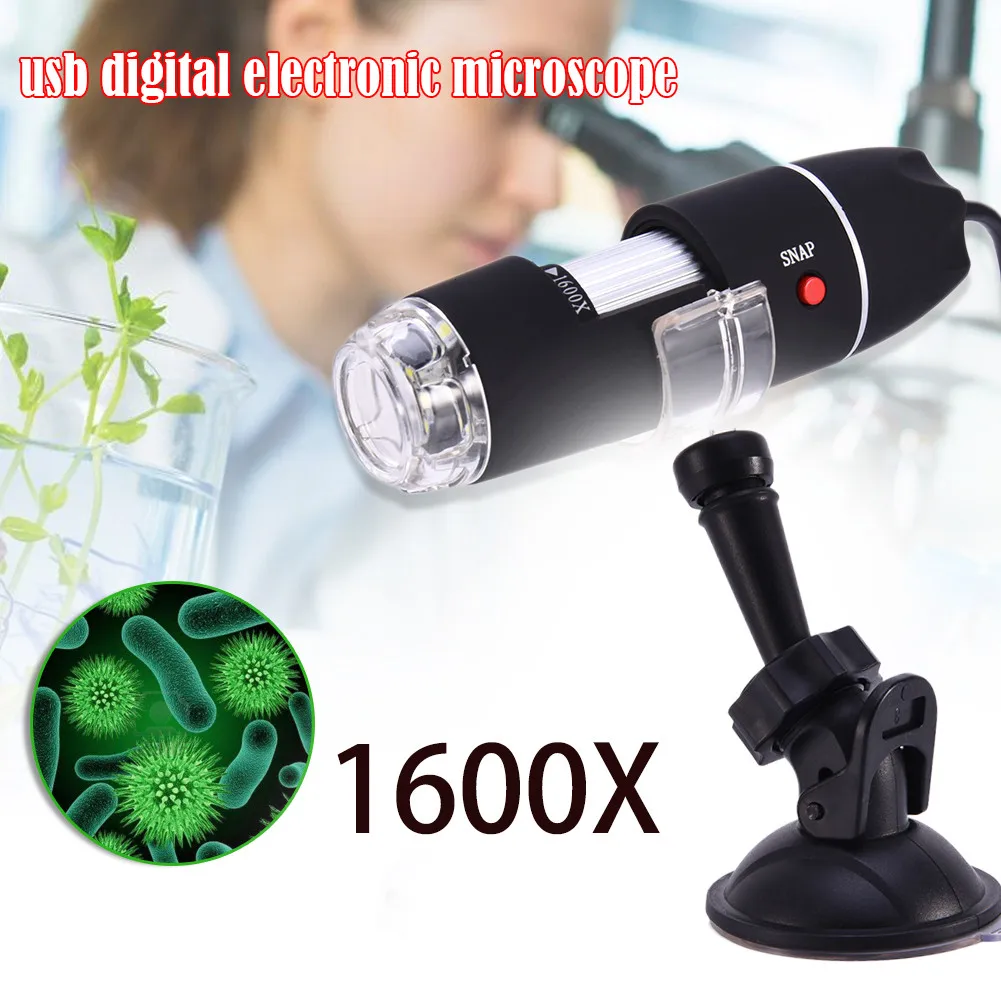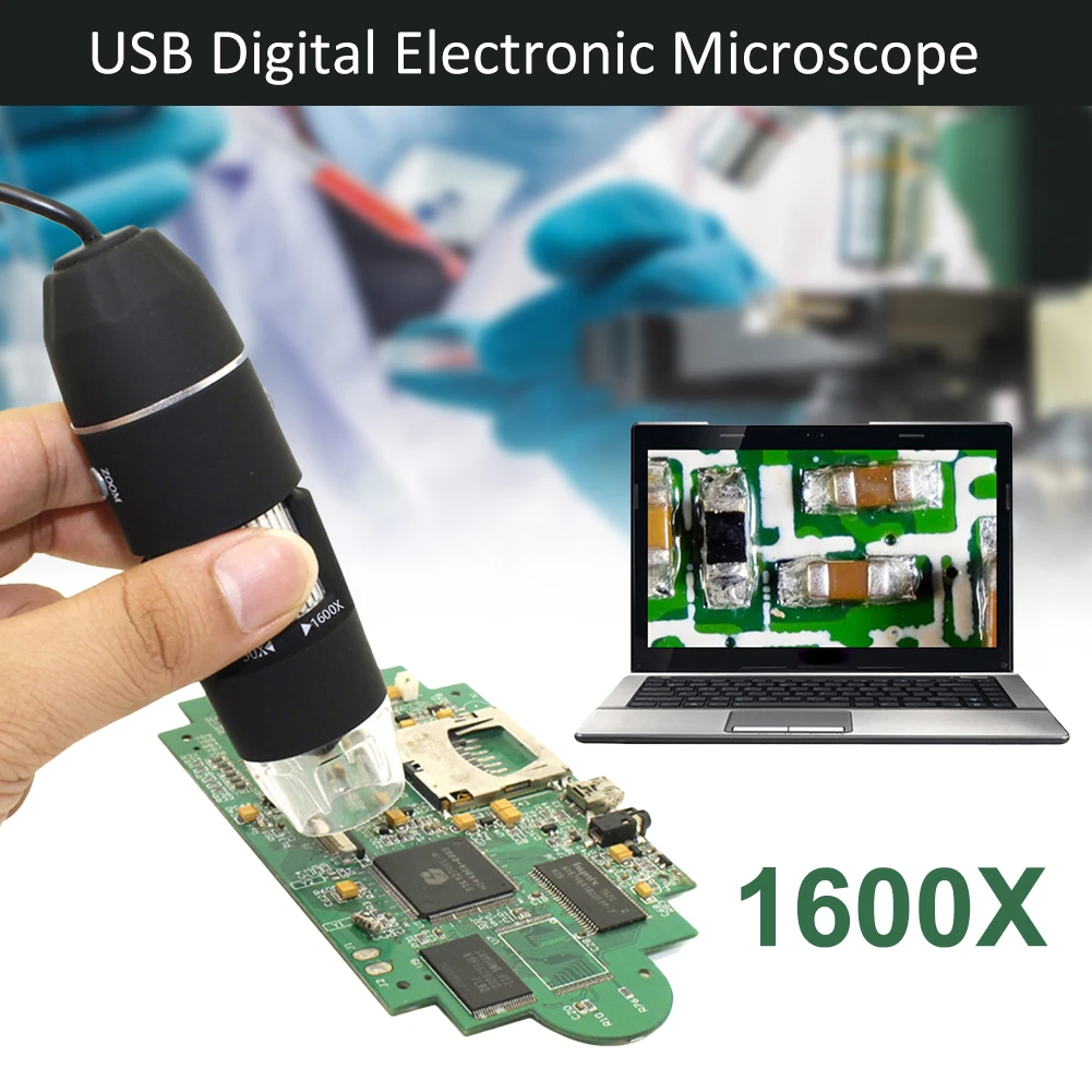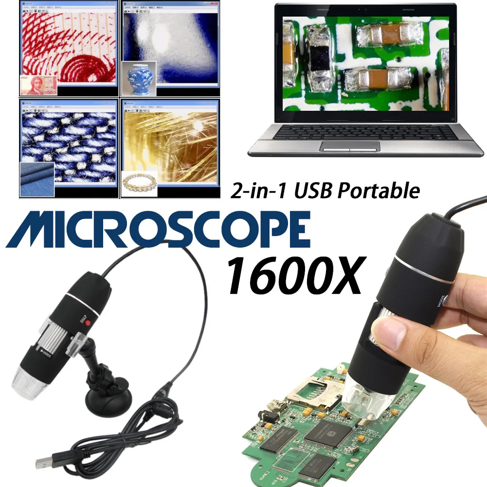 Портативный USB микроскоп 2-в-1, 8 светодиодов, 1600 раз, цифровая электронная лупа обнаружения, электронный стерео пинцет, увеличение