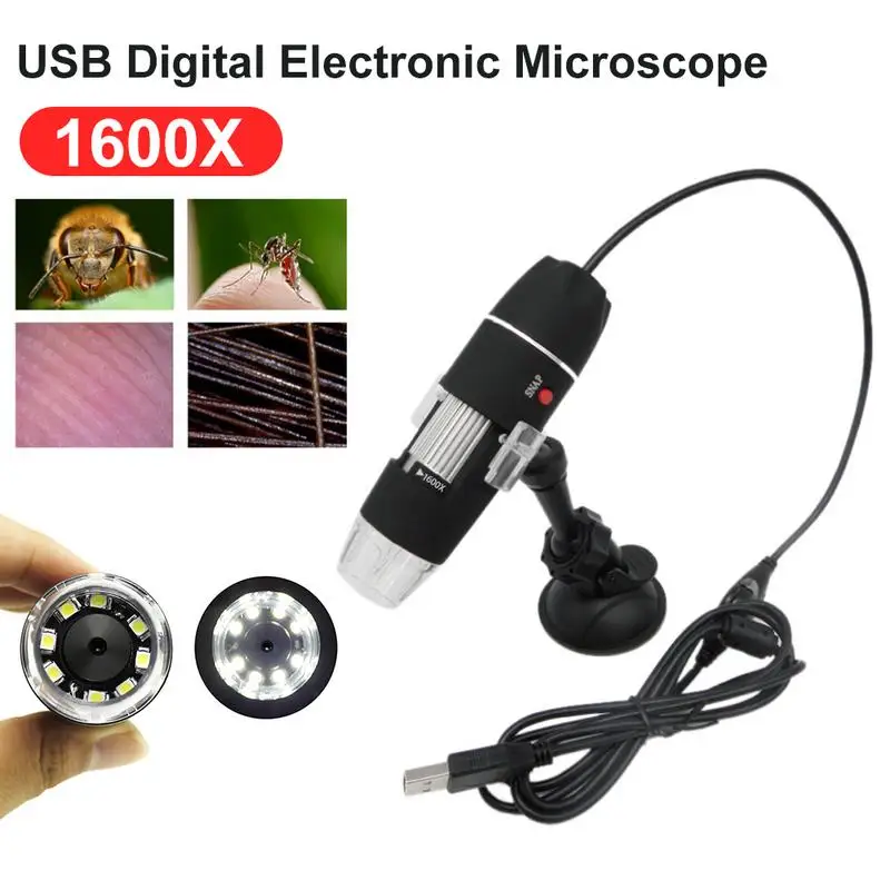Характеристики продукта: 1. Отличный дизайн, отличная производительность. 2. 8 светодиодов, сильная яркость, более четкая. 3. Профессиональный, более универсальный, может быть применен для лабораторных исследований, электронных компонентов, идентификации ювелирных изделий и т. Д. 4. USB, более удобный для подключения компьютера. 5. Портативный, легкий и простой в использовании. 6. Фиксация присоски, прочная и надежная, подходит для различных плоскостей, наклонов, верхних крышек. 7. Серия U стандартному определению пикселей, 30 Вт интерполяция до 200W пикселей, 00X-1600X, статическая резолюция 1600*1200, разрешающая способность видео: 640*480, поддержка WIN XP/VISTA; WIN 7 32-битными и 64-битными; win8, поддержка Win10maclinuxparts устройств, работающих на платформе андроид телефон. Параметры продукта: 1. Размеры (приблиз.): Держатель Высота: 12 см/4.72in, микроскопа: 11x 3 см/4,33 * 1.18in, увеличение: 0-1600x, пикселей: 2 миллион пикселей 2. Материал: пластиковый корпус 3. Применение: общее Упаковочный лист: 1 х микроскоп 1 x кронштейн