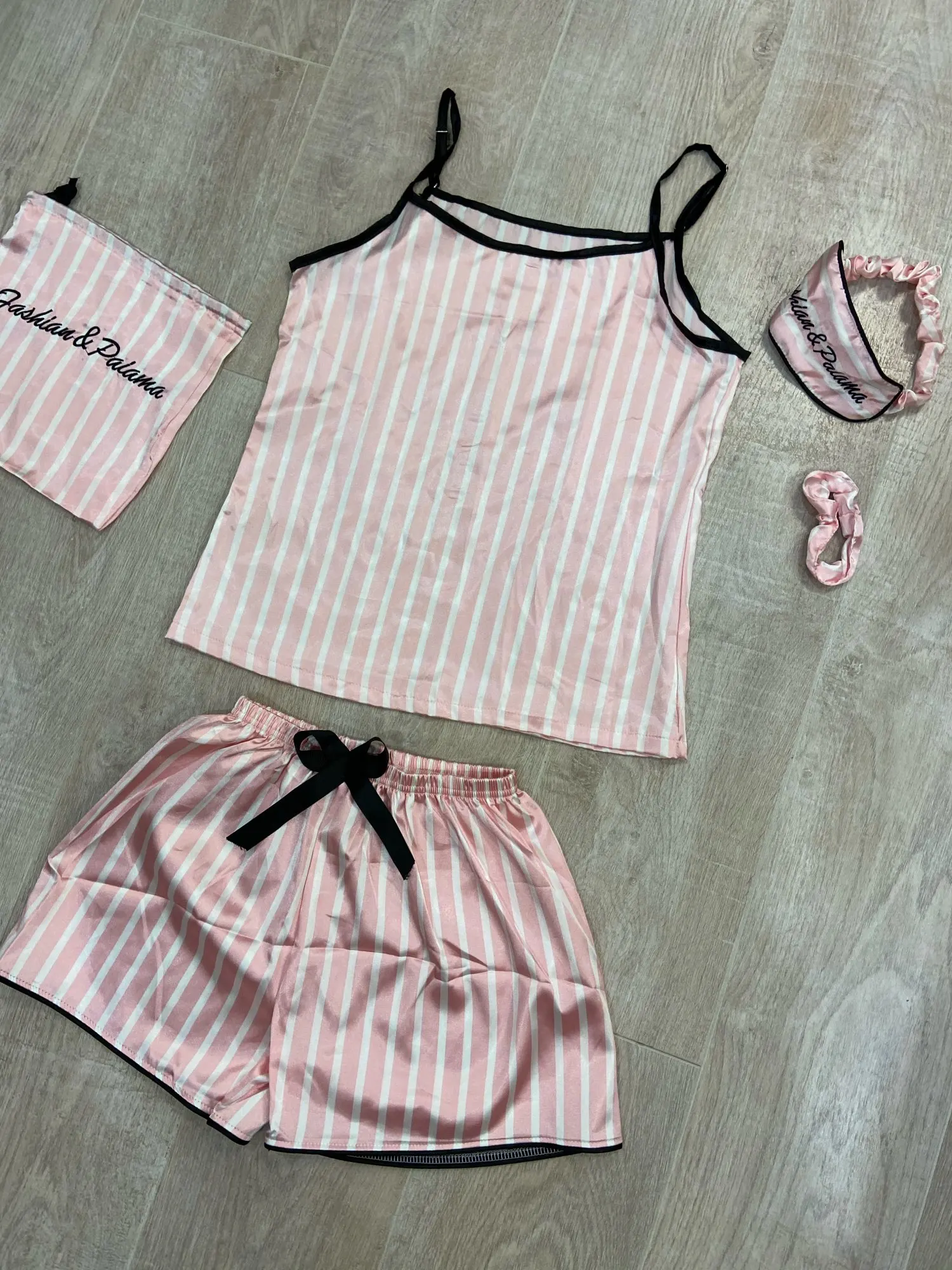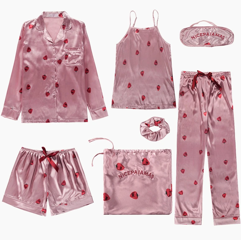 Пижама женская шелковая с принтом, шорты, Топ с длинным рукавом и эластичным поясом, комплект из 7 предметов для весны и лета, 2020