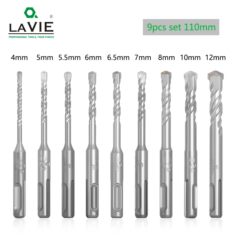 LAVIE 9 шт. электрический молоток SDS Plus набор сверл 110 мм бетонная стена кирпичная кладка отверстие пилы сверление 4 мм 5 мм 6 мм DB01017