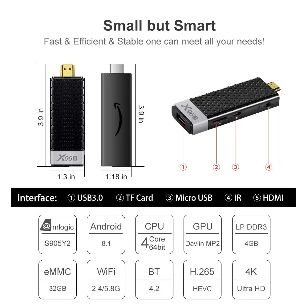 Мини-ТВ-флешка X96S, процессор Amlogic s905Y2, Android 8,1, DDR3, 2,4 ГГц5G, Wi-Fi, 2G16G, 4K, медиаплеер X96 Max, бесплатная доставка, Испания
