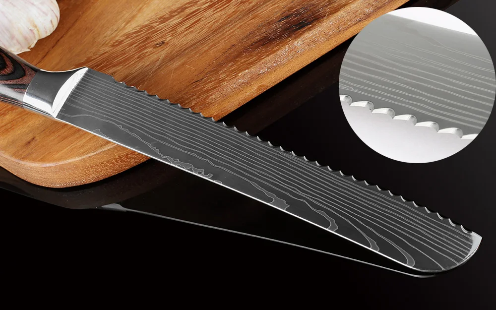 Профессиональный нож для хлеба XITUO, нож шеф-повара из дамасской нержавеющей стали, 9 дюймов, зубчатый дизайн