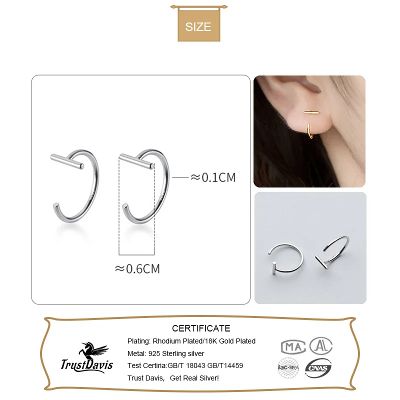 Женские гладкие серьги-кольца, небольшие открытые обручи, серьги дл...