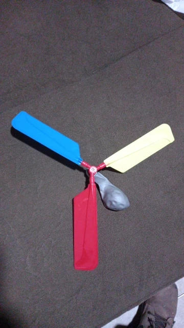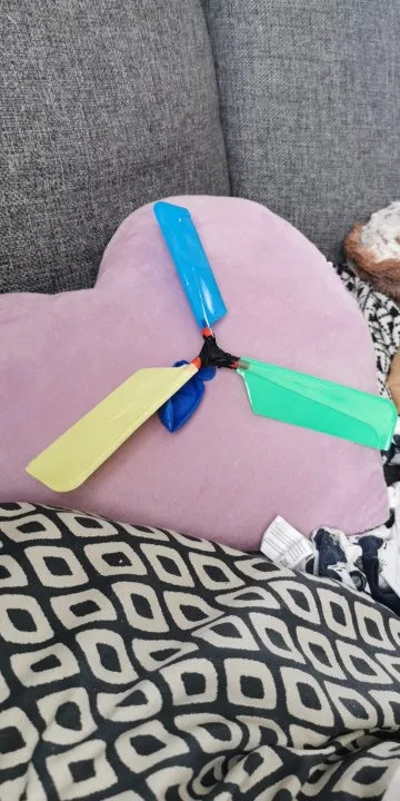 Прикольная игрушка. Но очень хлипкая, одна лопасть сразу отвалилась, пришлось клеить.