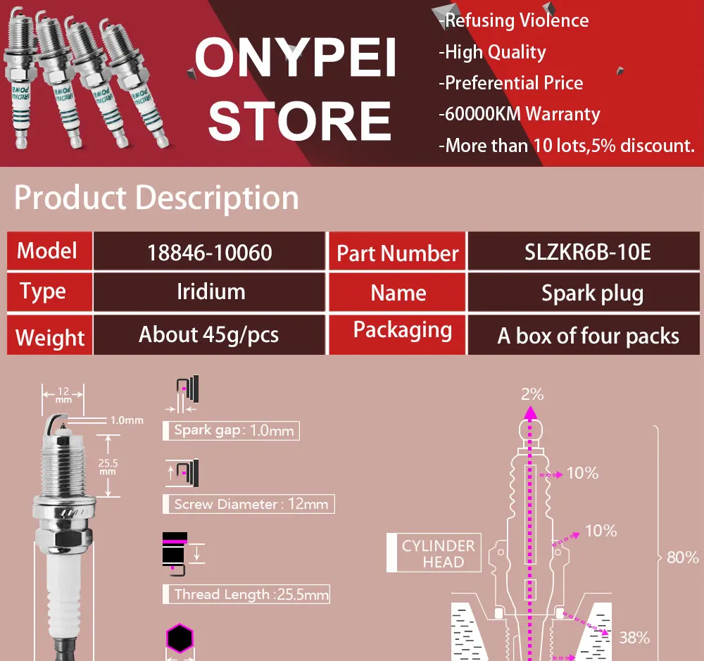 4 шт.лот иридиевая Свеча зажигания 18846-10060 LZKR6B-10E для Hyundai Elantra Kia Soul 1884610060 LZKR6B10E