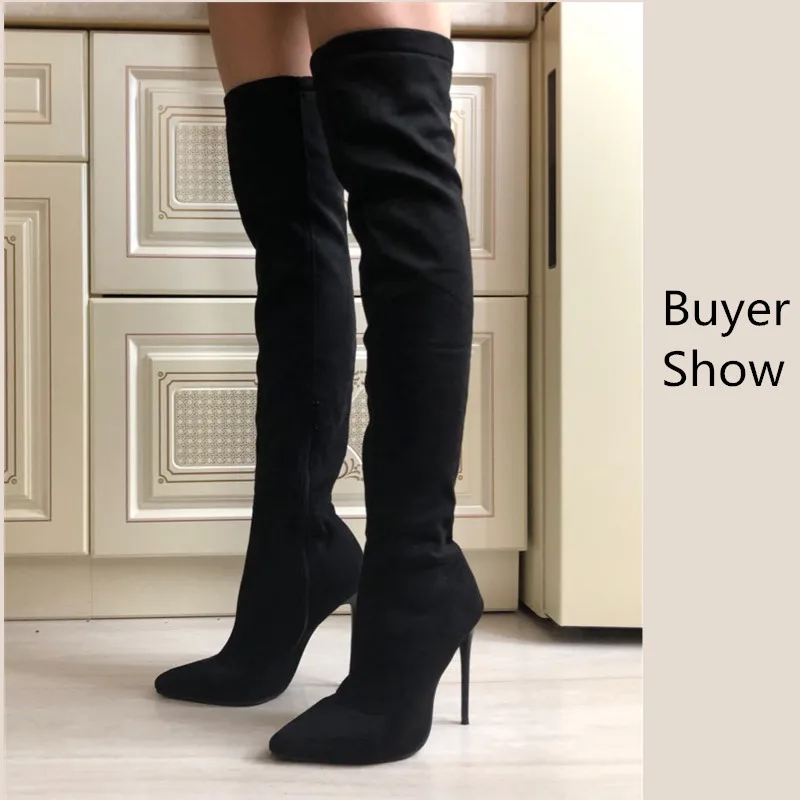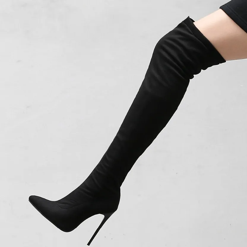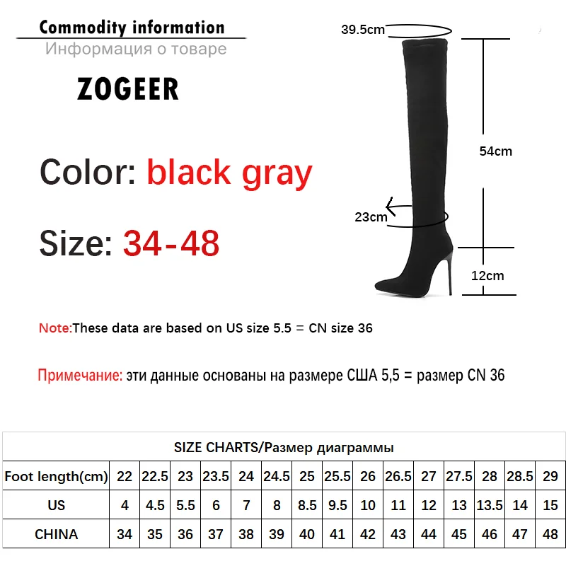 Сапоги женские эластичные выше колена, на высоком каблуке, черные, серые, большой размер 45, 47