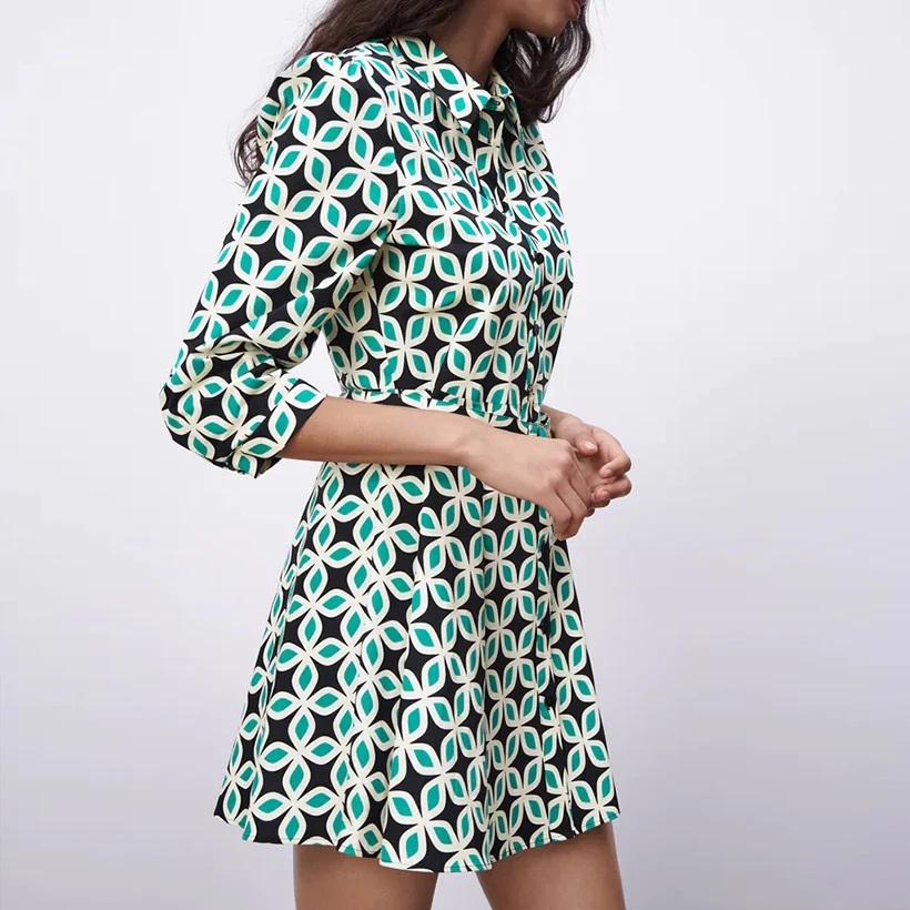 Женское кружевное короткое платье, новое Повседневное платье-рубашка с принтом цепей и Подогнутым подолом, платье сексуальное для ночного клуба