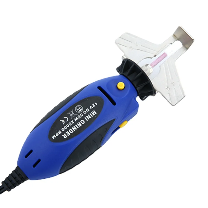 Это мини-электрическая шлифовальная машина, которая может быть подключена к мобильному источнику питания 12 В. Он может работать даже когда нет источника питания в поле, просто нужно прикрепить зажим шнура питания к автомобильному аккумулятору для работы. И его легче использовать, не снимая цепь во время измельчения.