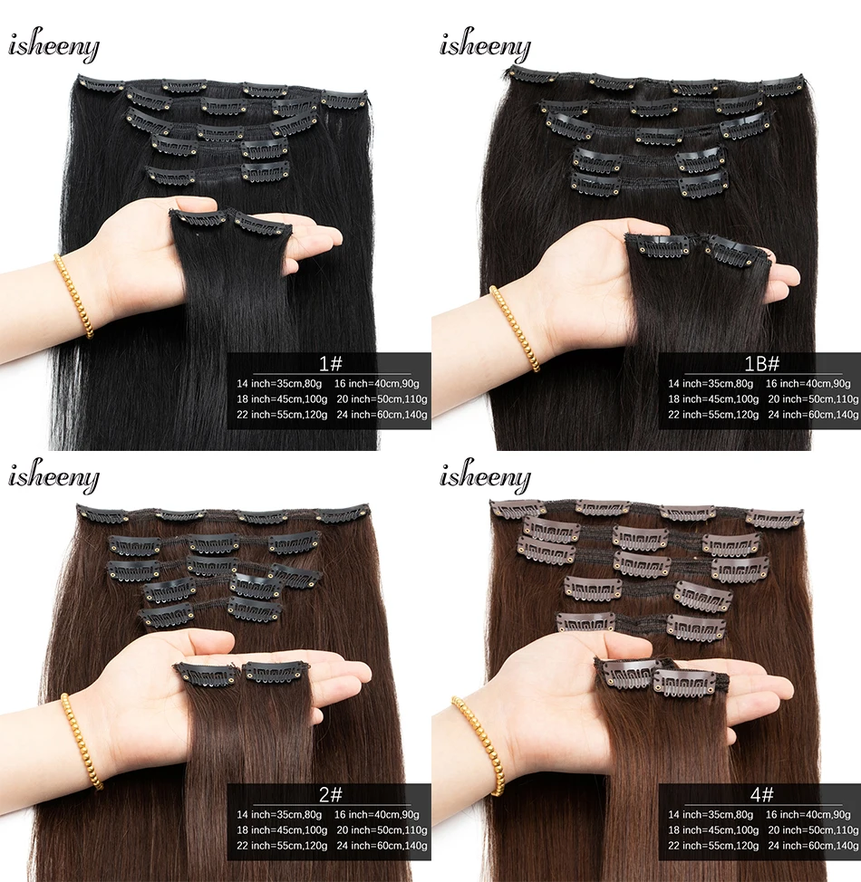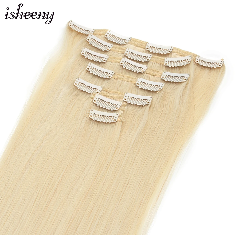 Пункт: Isheeny Клипсы для наращивания человеческих волос 7 шт. / Компл., Светлые человеческие волосы Реми, прямые, 14-24 дюймов, натуральные, черные, коричневые, настоящие.