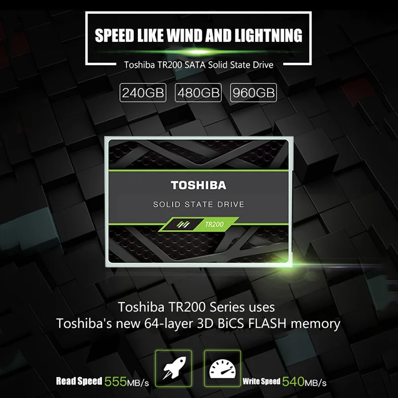 Твердотельный накопитель TOSHIBA, 240 ГБ, Восьмиядерный процессор TR200, 480 ГБ, 64 слоя, 3D BiCS FLASH TLC, 2,5 дюйма, SATA III, 960 ГБ, внутренний диск для ПК и ноутбуков