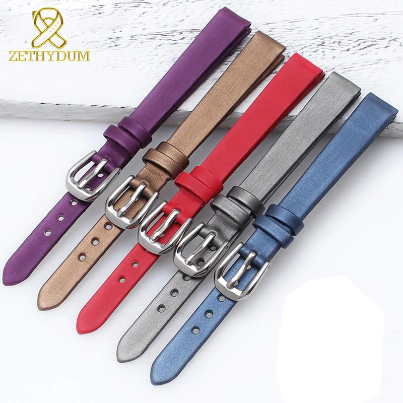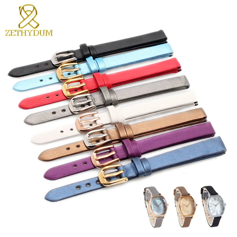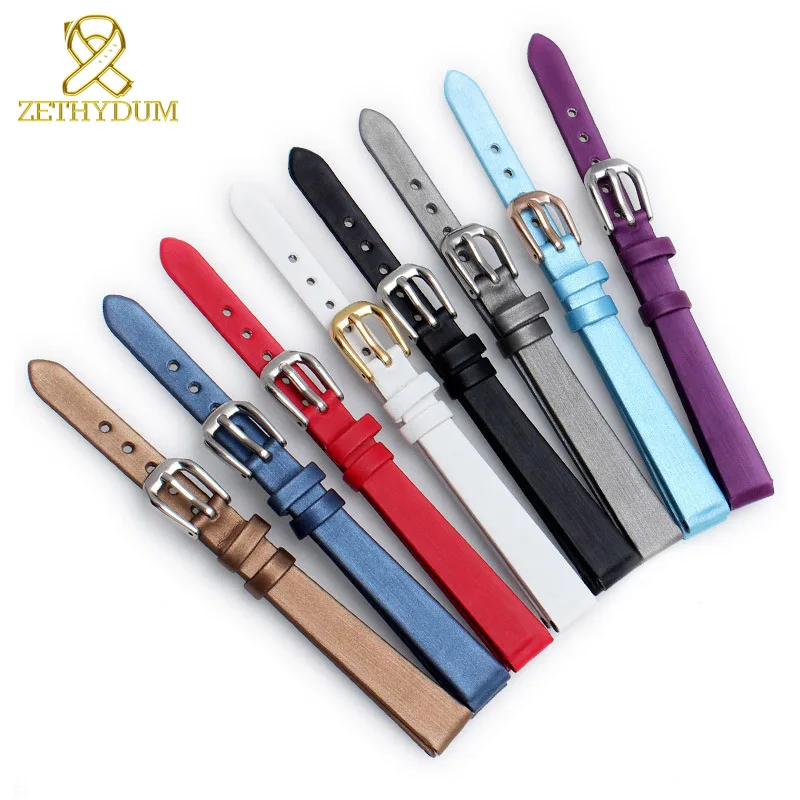 Ремешок для часов женский из натуральной кожи, модный шелковистый браслет с блестками, маленький браслет для наручных часов, 6 мм 8 мм 10 мм 12 мм