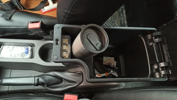Доставка шустрая. Встал четко безо всяких прокладок и наклеек, что были в комплекте. Крышка оказывается двойная и верхняя часть на полозьях выдвигается вперед. Круть! Внутри типа подстаканника, но термокружка не встает ни внутрь, ни снаружи - облом. Только бумажный стаканчик влезет. Провода сопливые, юсб не тестил - вообще не пользуюсь. Комфорт вырос на голову. Доволен штуковиной!