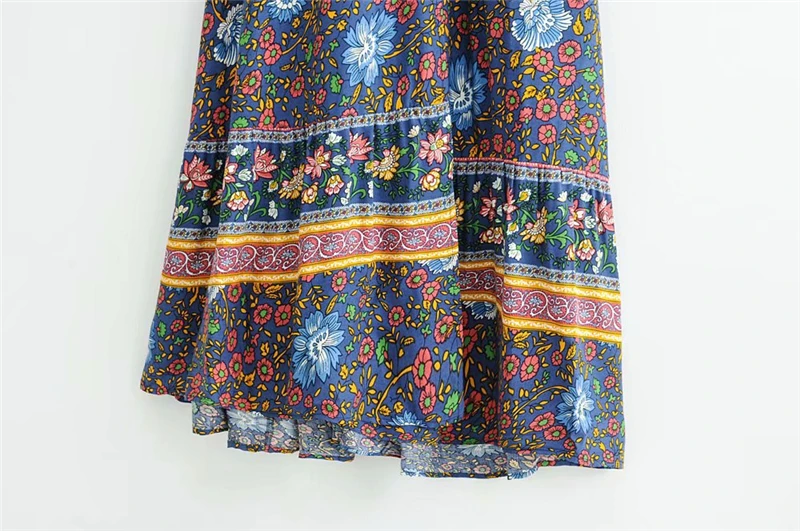 Женское винтажное платье с цветочным принтом, длинный пляжный богемный Сарафан Макси с рукавом летучая мышь и V-образным вырезом, летнее богемное платье