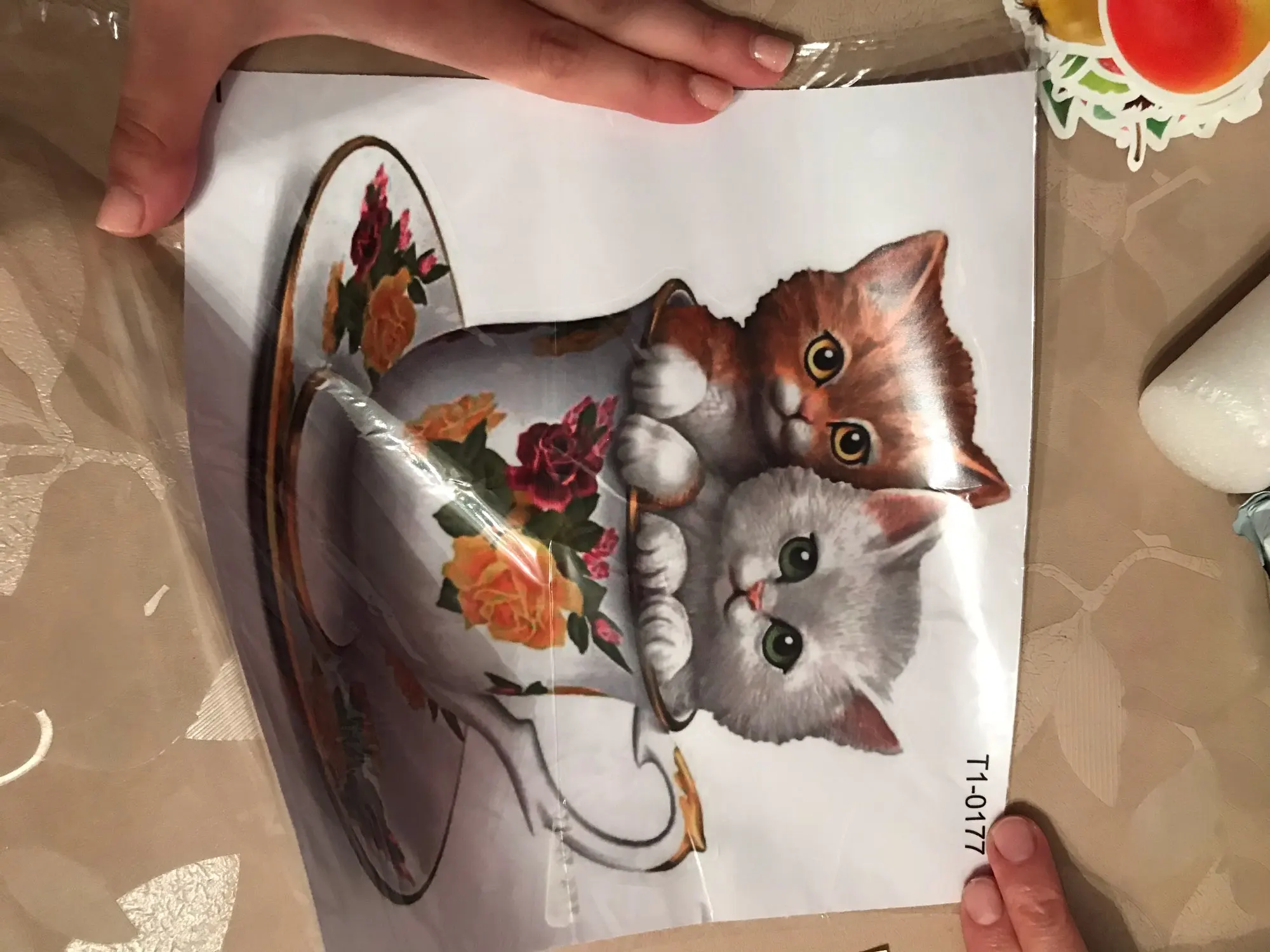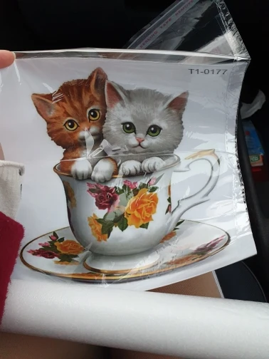 Товар прибыл очень быстро. Две недели, Новой почтой. Наклейка очень красивая и качественная. Выглядят котята чётко как на картинке. Рекомендую.