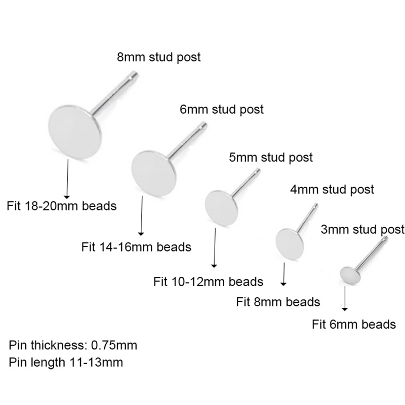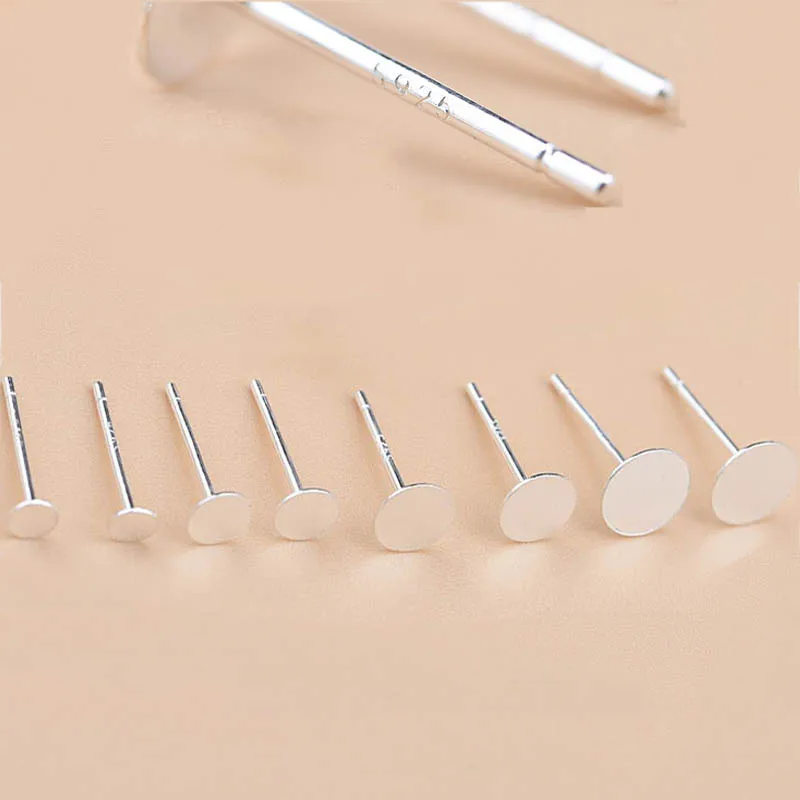 Основа для сережек сделай сам из стерлингового серебра 925 пробы, Круглые прокладки 34568 мм, Пустые Настройки кабошона, комплектующие для Сережка-гвоздик, пост, 20 шт.