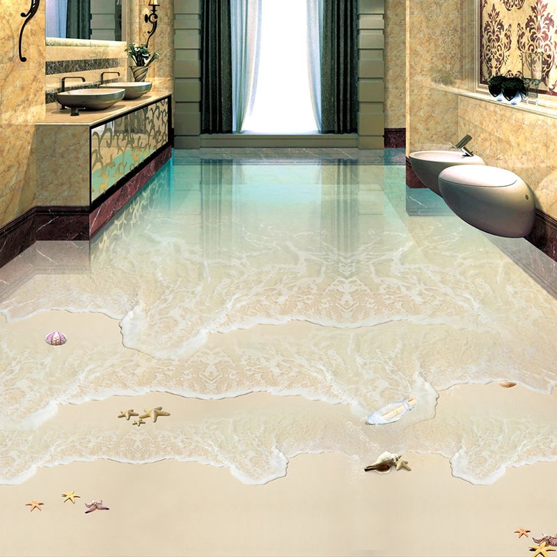 Пляж; Морские волны 3D фотообои на заказ, настенная фреска из ПВХ, водонепроницаемая самоклеящаяся плитка для пола в ванной комнате, наклейки, обои, фрески