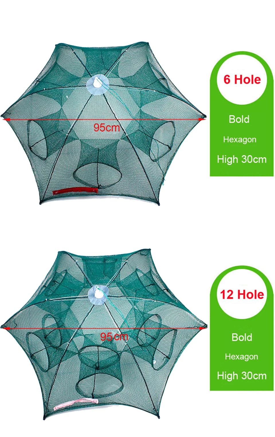 Складная переносная Шестигранная Автоматическая ловушка для рыбалки с 4681216 отверстиями, ловушка для креветок, рыбы, креветок, гольянов, крабов, Накидная сетчатая ловушка