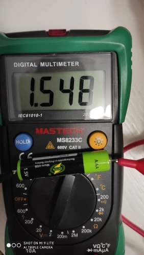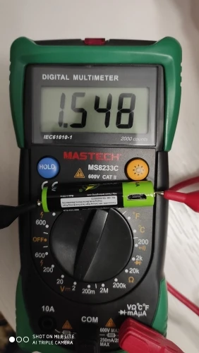 Емкость при разряде током 50...250 мА составила 540 мА/ч Напряжение от 1.507...1.39 В