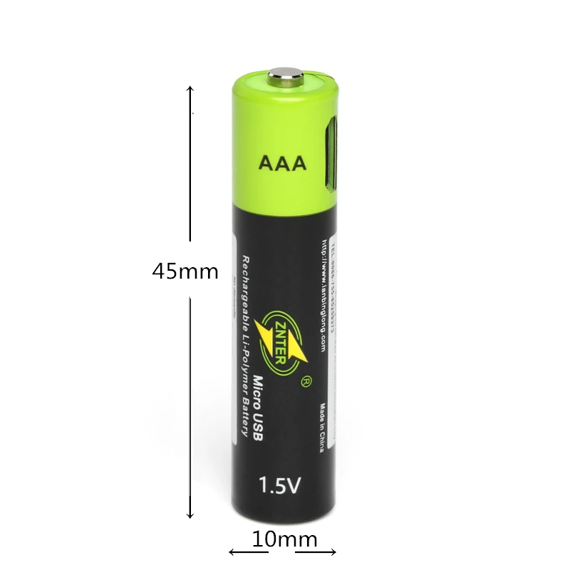 Литий-полимерная батарейки ZNTER 1.5В AAA с кабелем Micro USB для зарядки
