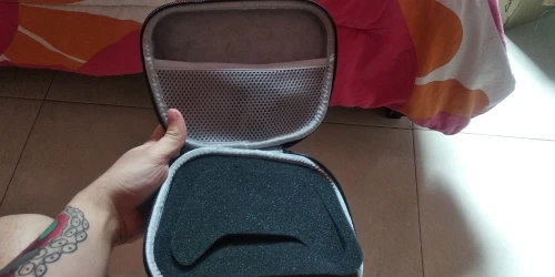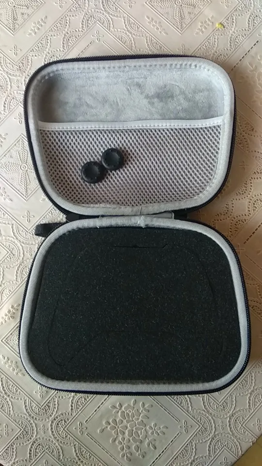 Оказался больше чем я ожидал Вместе с самим "чехлом" есть ремешок и (возможно в подарок) накладочки на стики Крепкий, внутри приятный материал, удобный кормашик под провод - которого у меня нет) Если надавливать на крышку постоянно нажимается стик.