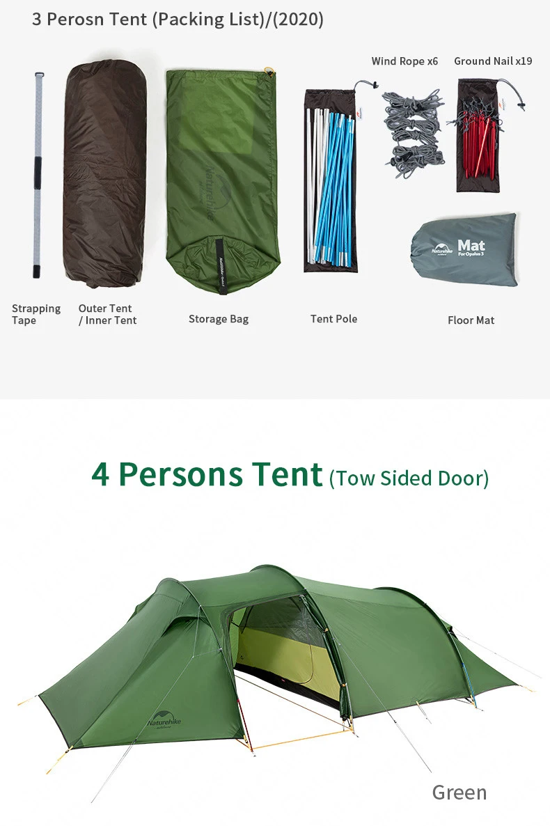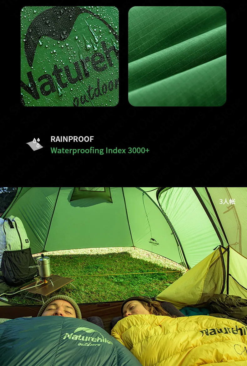 Палатка Naturehike для кемпинга, семейная Ультралегкая туннельная палатка из опала для непромокаемый тент, вместительная для 3-х человек, NH17L001-L