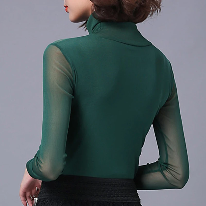 Женская кружевная блузка с длинным рукавом, эластичные сетчатые топы, повседневные блузки, прозрачный топ, 2019