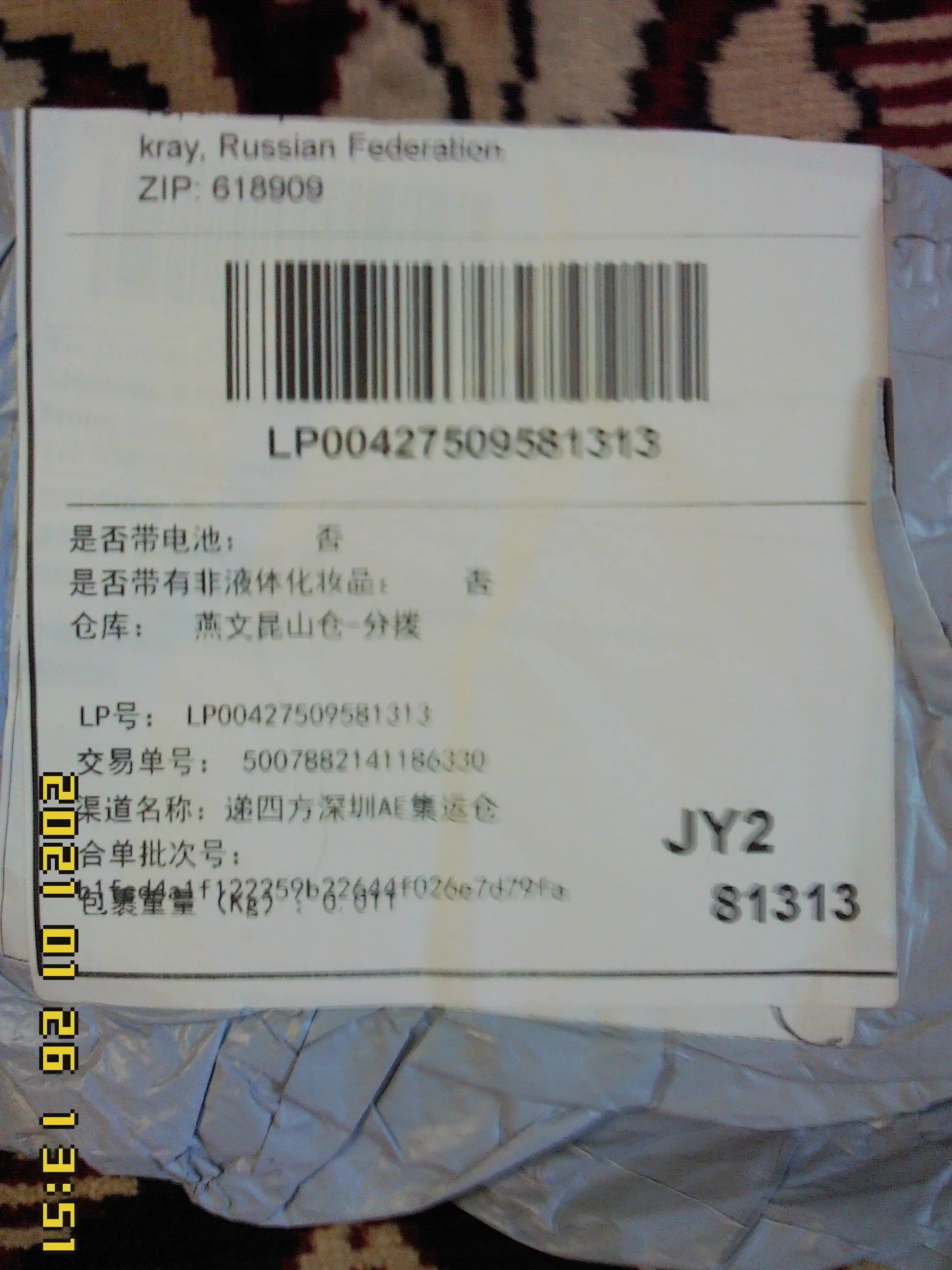 Страна: RU Доставка: Cainiao Super Economy 04.01.2021