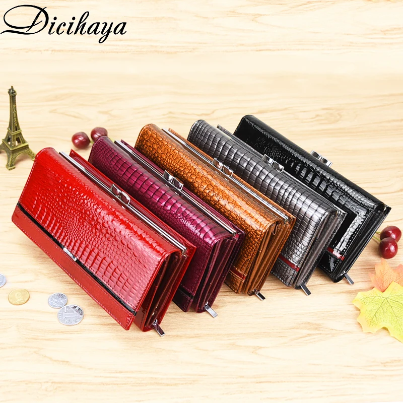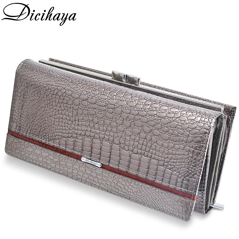 Кошелек женский из натуральной кожи, с крокодиловым принтом, кошелек-клатч на молнии