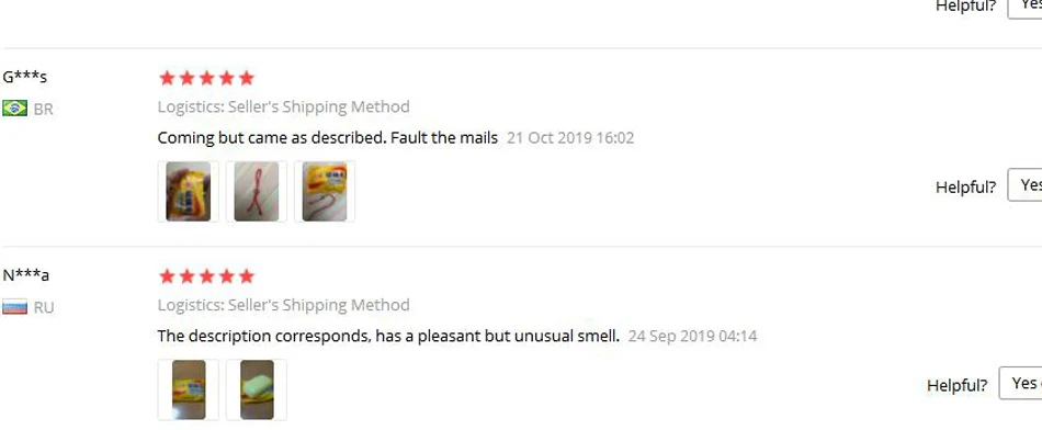 Всё соответствует описанию. К самому мылу были положены подарочки (мешочки чтоб делать пену). Всё понравилось, но очень долгая доставка. До Беларуси 2 месяца