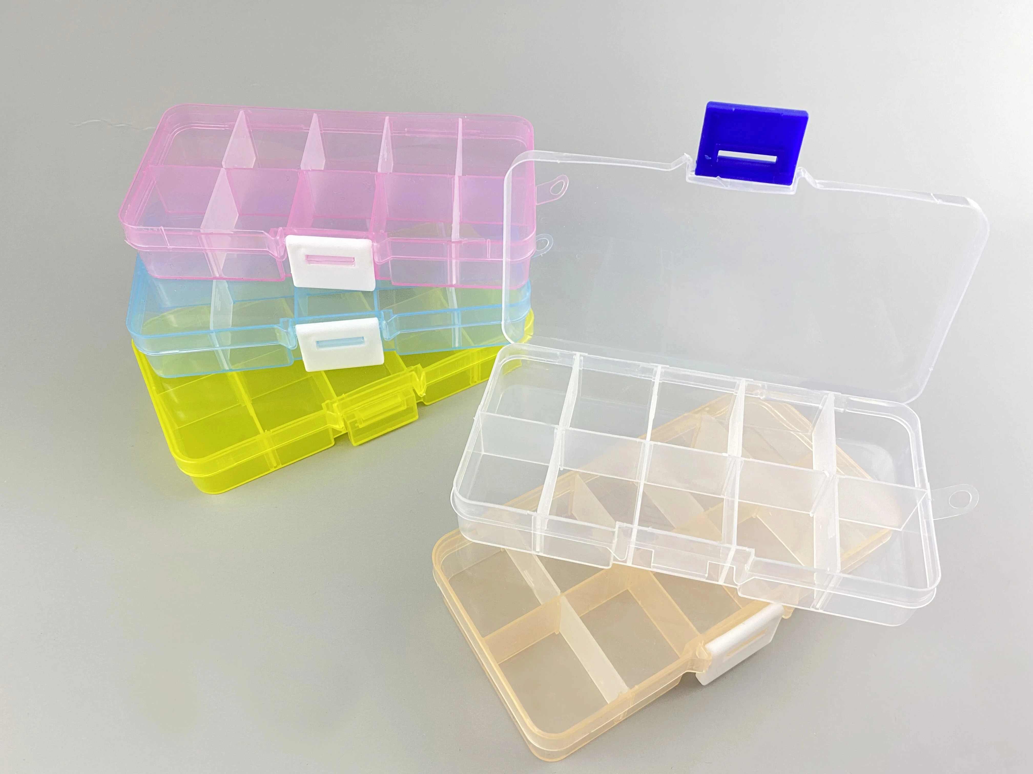 Новинка, 10 ячеек, цветной портативный ящик для хранения ювелирных изделий, контейнер, кольцо, электронные детали, винтовые шарики, органайзер, пластиковый чехол