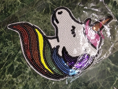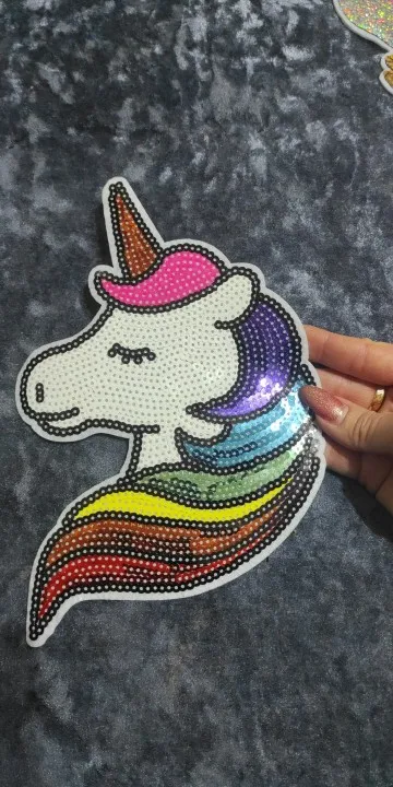 Хорошее качество. Единорог пришивной. Яркий, красивый, большой. Дочь очень довольно. Отправили быстро. Успел прийти до Нового года. Что вдвойне порадовало.