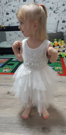Супер платье. Мягкое. Лёгкое. Красивое. Дочь в восторге. Но ей великовато пока. До ДР на три года подрастет надеюсь. Сейчас дочери 2 года и 5 месяцев и вес 12,5 кг. По росту хорошо, но на спине нет никакой регулировки, надо потолстеть или вырасти чуток.