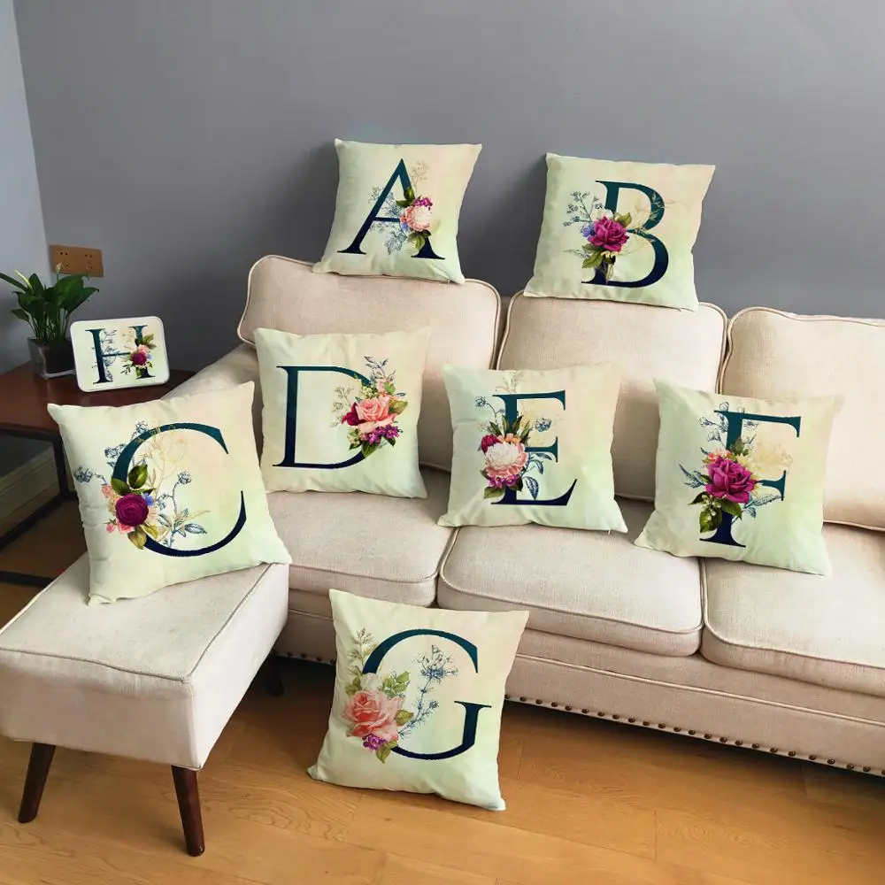 Наволочка для подушки с буквенным принтом и английским цветком 45*45 см, наволочки для подушки, Короткие Плюшевые наволочки, чехол для дивана, домашний декор, бежевые подушки, чехол