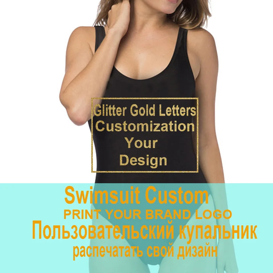 Женская пляжная одежда с принтом логотипа вашего бренда, слитный купальник с золотыми буквами на заказ, купальный костюм, бикини