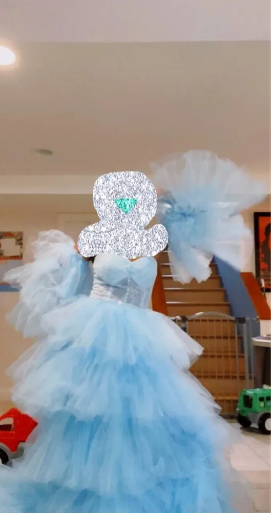 Платье-Русалка из фатина с многоярусными блестками, светло-голубого...