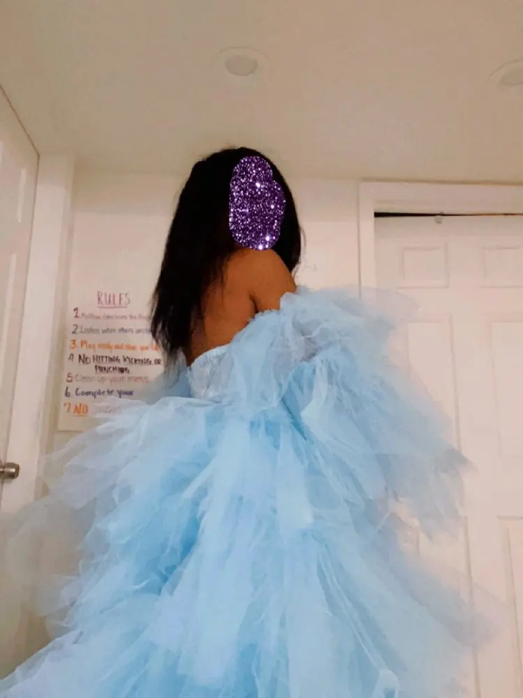Очаровательные светло-голубые фатиновые платья для выпускного вечер...