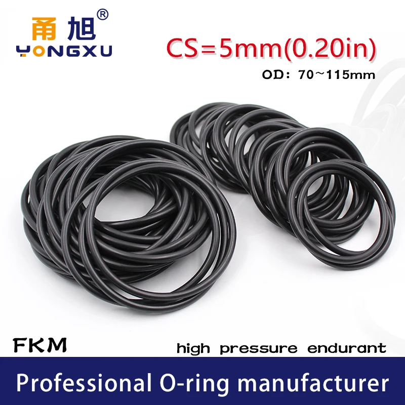 Уплотнительное кольцо из фторкаучука, черное уплотнение FKM, CS5 мм, OD707580859095100115*5 мм, кольцевое уплотнение, масляное кольцо, уплотнительная шайба для масла