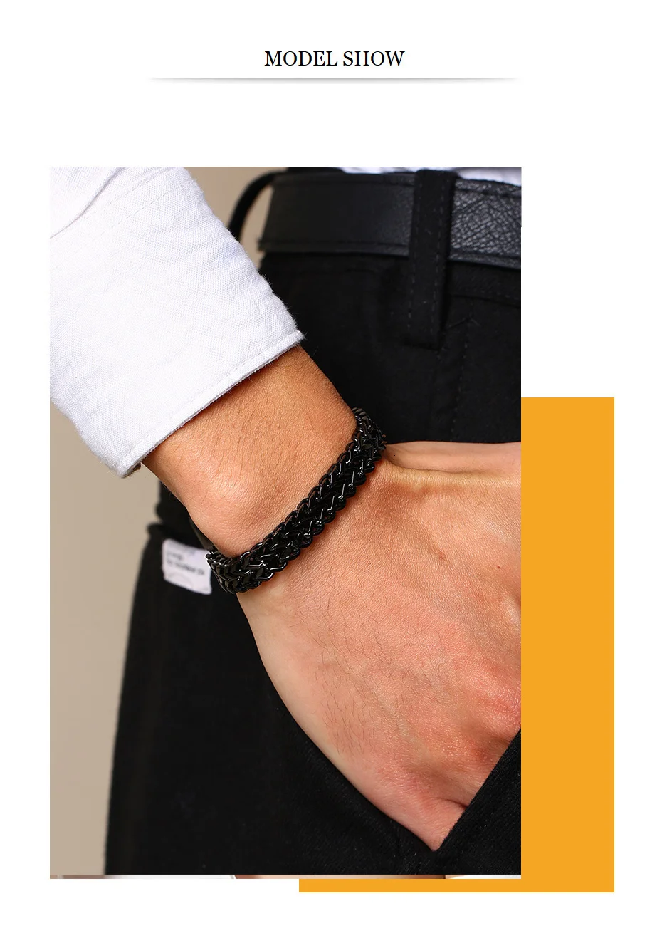 Черный Браслет из натуральной кожи мужские ювелирные изделия экстре...