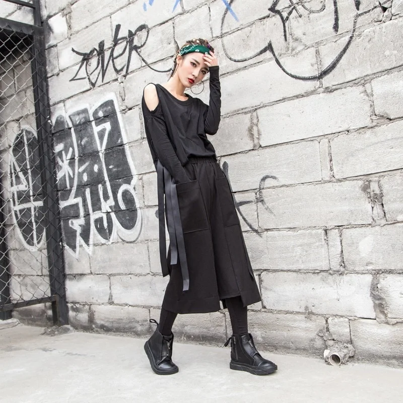 Женские широкие брюки с карманами, повседневные свободные брюки до щиколотки с эластичным поясом, уличная одежда, весна 1010