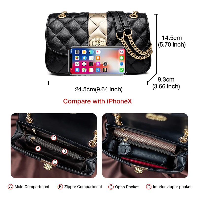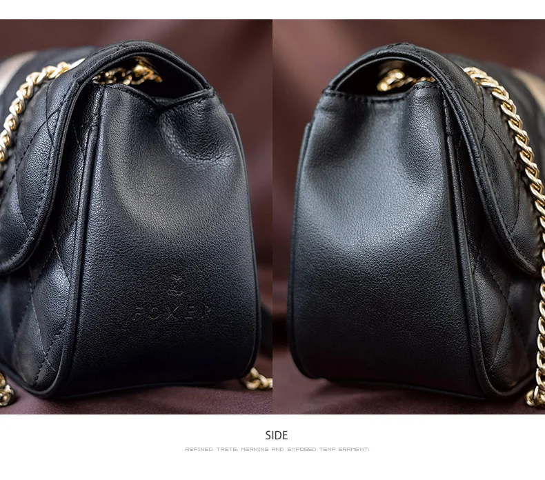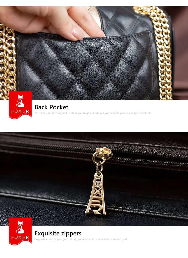 Женская сумка-Кроссбоди FOXER, черная сумка-мессенджер из спилковой кожи, с ремешком на цепочке, в клетку с бриллиантами, для ношения весной и летом, 2019