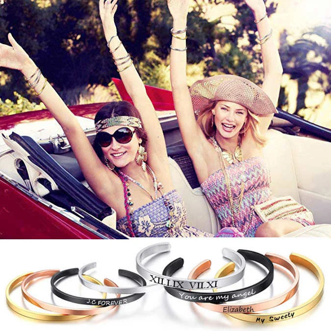 Браслет-манжета мужскойженский из нержавеющей стали с гравировкой