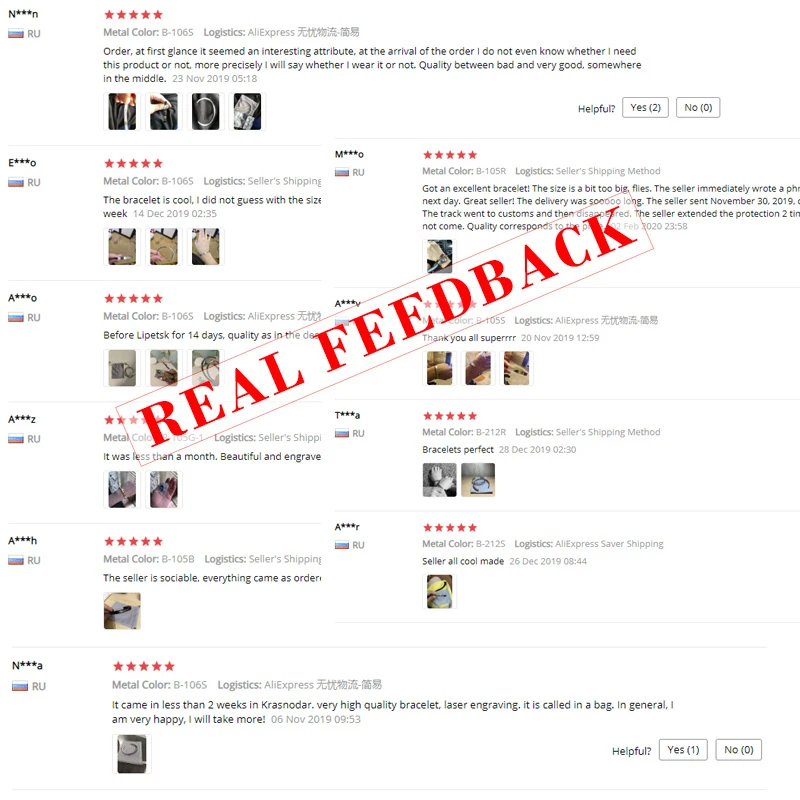 Я выбрала тонкий браслет. Поэтому слова гравировки тоже получились довольно мелким шрифтом (думаю это связано с особенностями нанесения гравировки, получаются широкие поля). При этом без ошибок и точно по эскизу. Поэтому ставлю все пять звёзд. И пришло очень быстро. Меньше месяца.