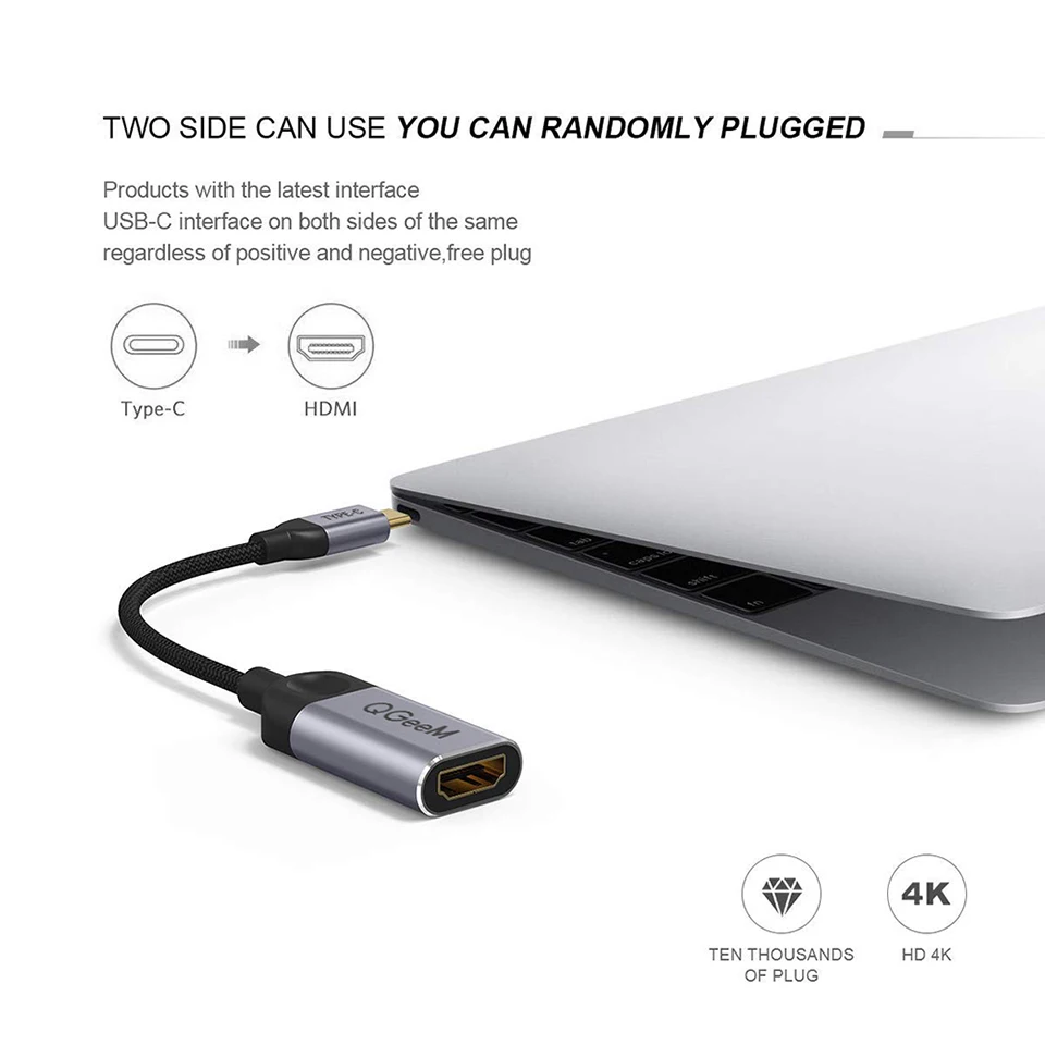 Кабель QGeeM USB C в HDMI, совместимый адаптер 4K Type-c в HDMI, конвертер для huawei mate 20 macBook pro 2018 ipad pro galaxy S9
