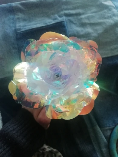 Это очень красиво, но более хрупко и слабее, чем я ожидал, кажется, буквально сделано из бумаги, палка пластиковая, но все же украшение украшения очень Довольно я даю ему 4 звезды, потому что его внешний вид красивый, продавец обернул его очень хорошо, и супер быстрая доставка продавцу, я рекомендую его цветок должен быть лучшего качества