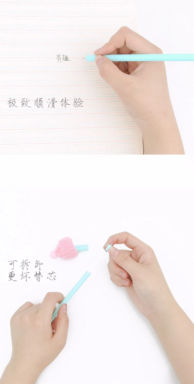 Шариковая ручка, 4 шт., гелевая ручка Kawaii мм, 0,5 мм, с разноцветной шляпой, черные чернила, ручка, канцелярские принадлежности для офиса, школьные принадлежности FB886