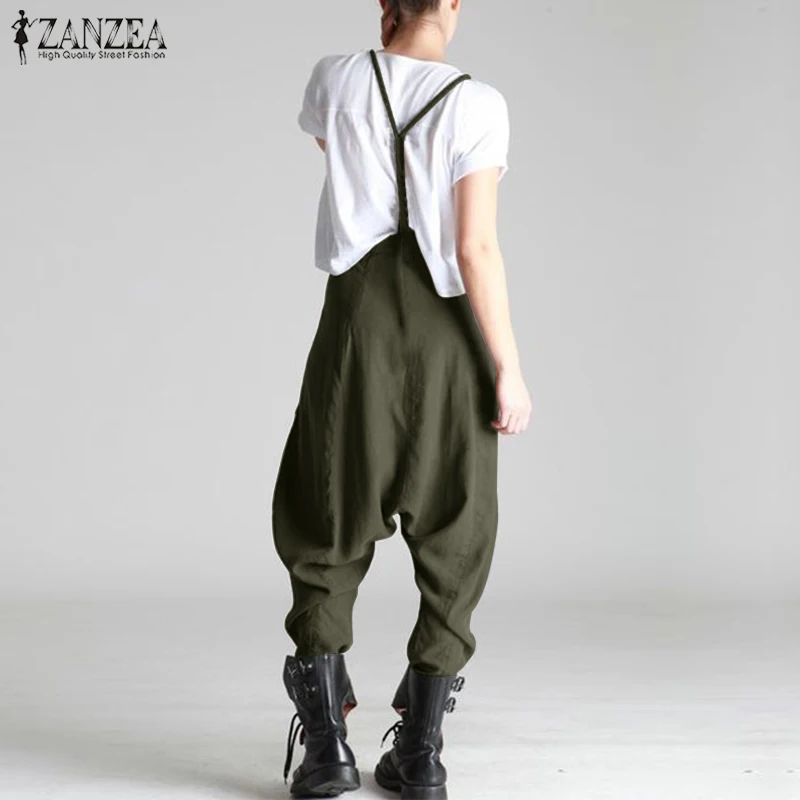 Модные женские летние комбинезоны ZANZEA с лямками, однотонные комбинезоны с заниженной мотней, повседневные Свободные Комбинезоны, женские праздвечерние Комбинезоны на подтяжках