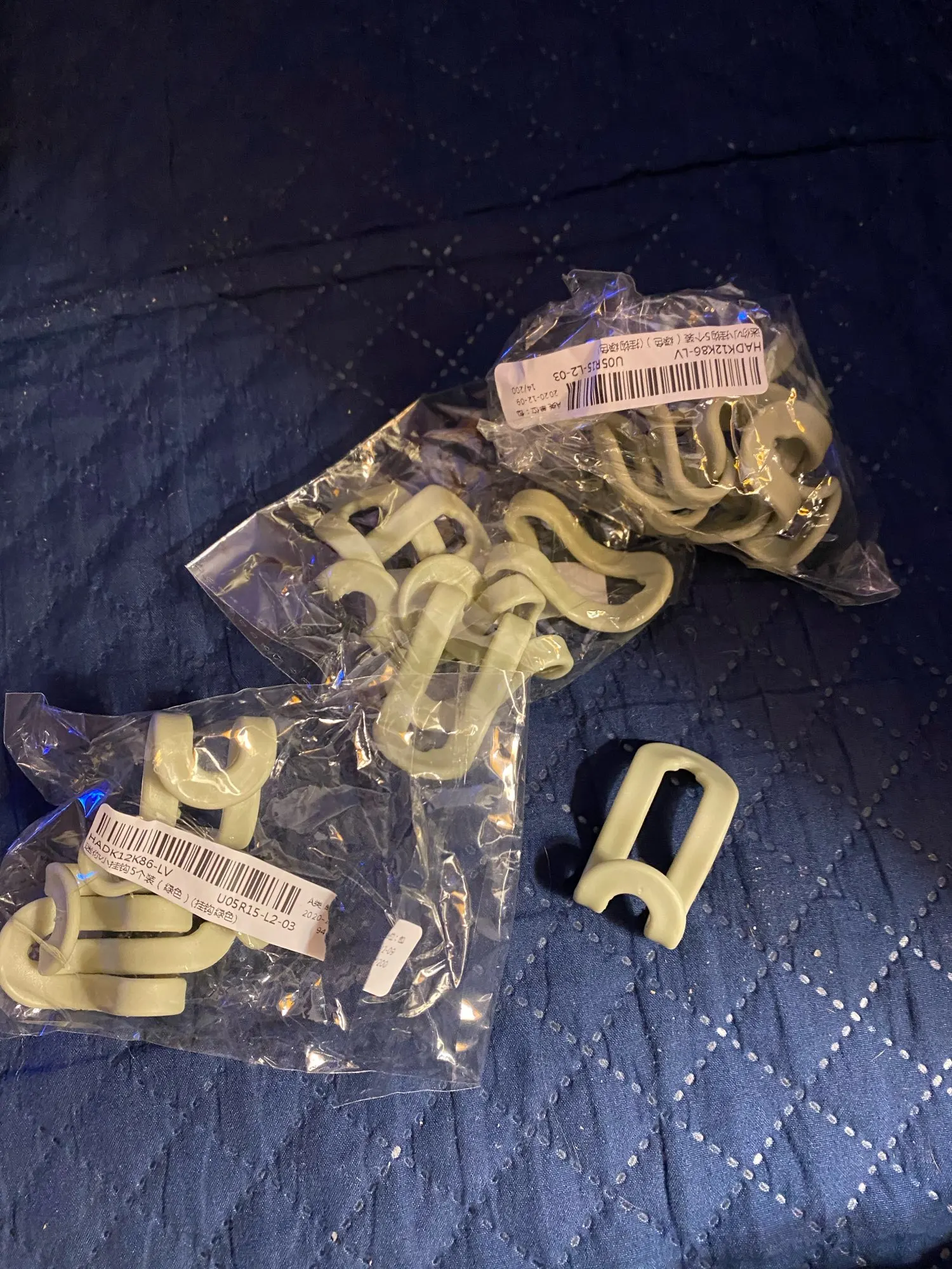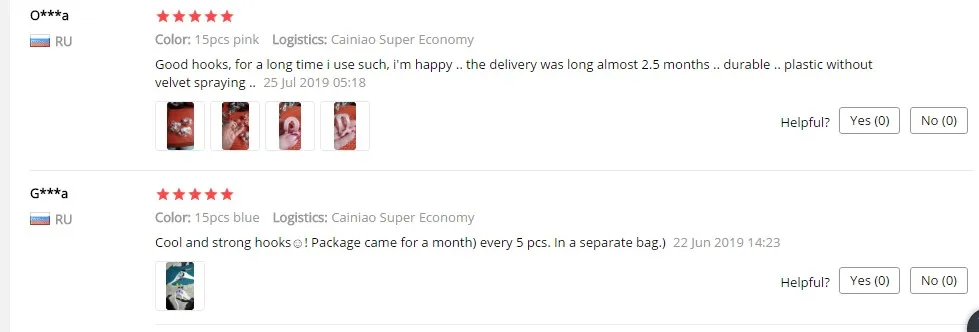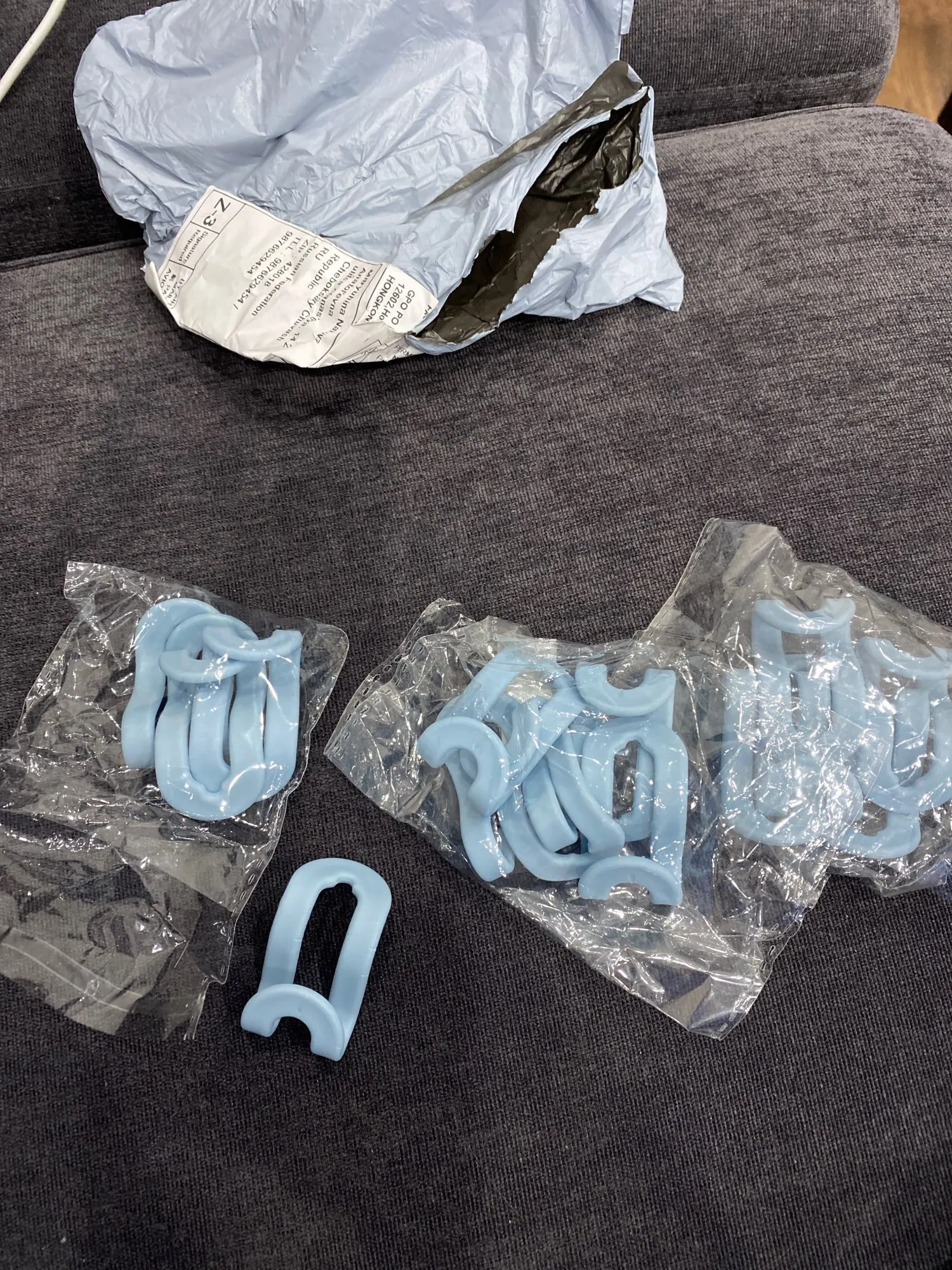 Доставка в Москву около месяца. Упакованы в два пакета. Количество крючков соответствует заявленному. Пластик прочный без запаха. Значительно экономят место в шкафу. Имеют более широкую прорезь для надевания на вешалку. Продавцу спасибо! Буду заказывать ещё