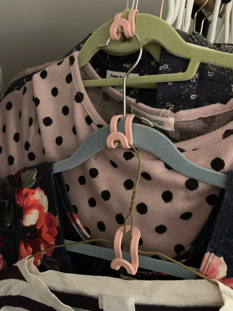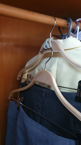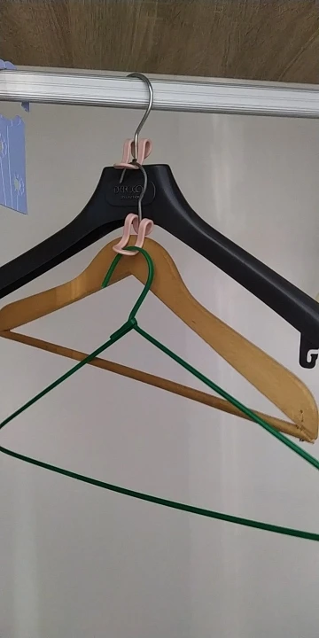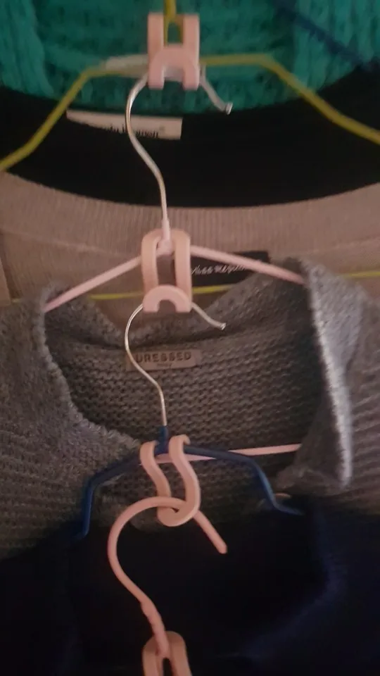Крючки хорошие, сделаны качественно, крепкие. Необходимо учитывать, что использовать их можно только с вешалками у которых тонкий крючок, это в основном вешалки с железным крючком. Не скажу что сильно экономится место в шкафу, поскольку все равно в ширину одежда занимает примерно столько же места, просто весит ниже. Интересная вещь, но я не оценила, поскольку эффекта экономии пространства для меня не хватило.
